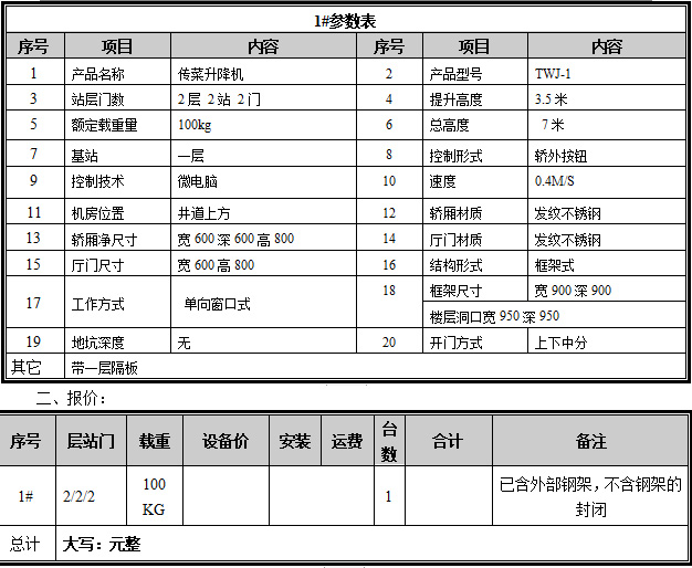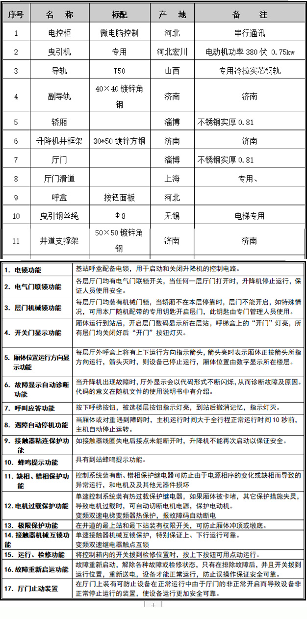 六、附升降機主要配置表及標準功能表